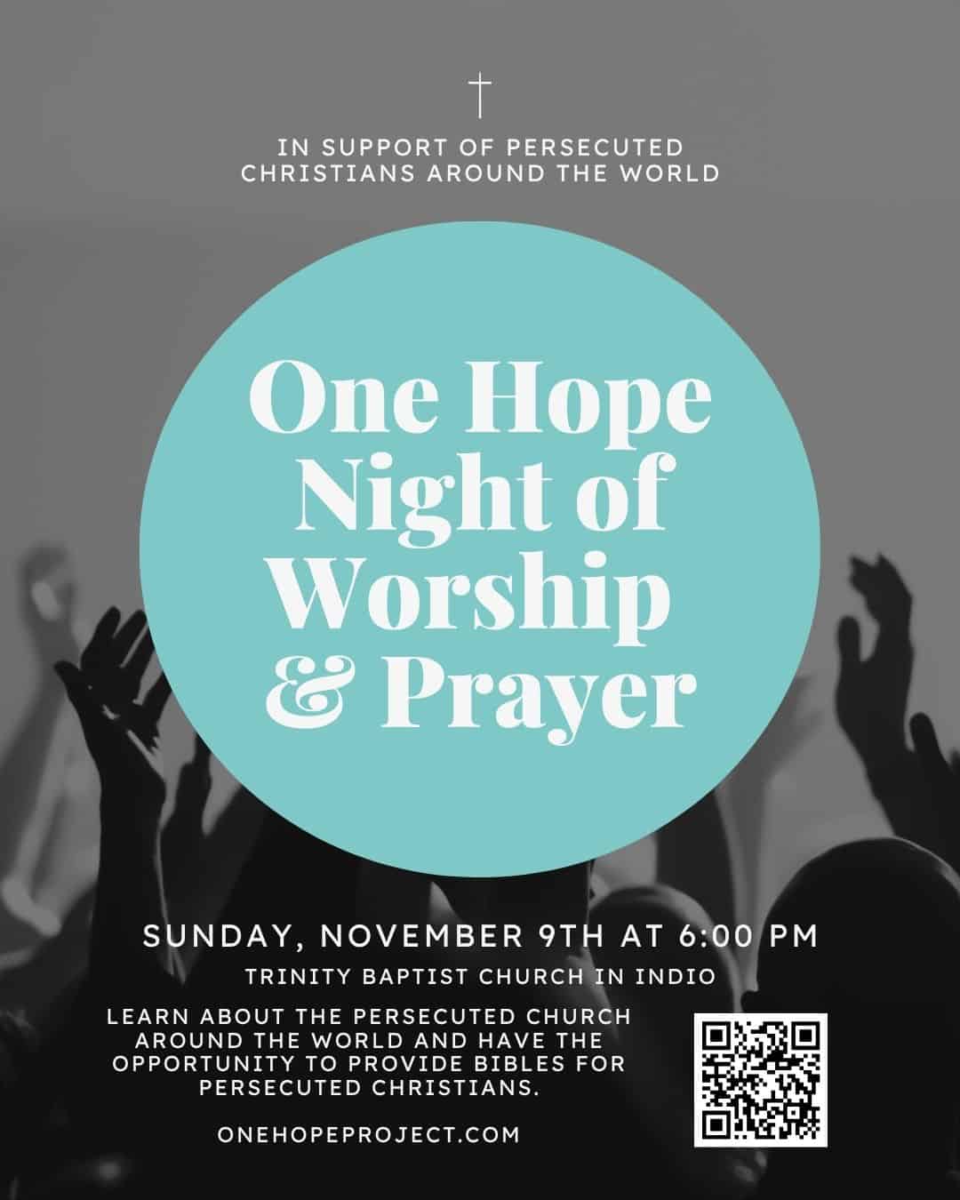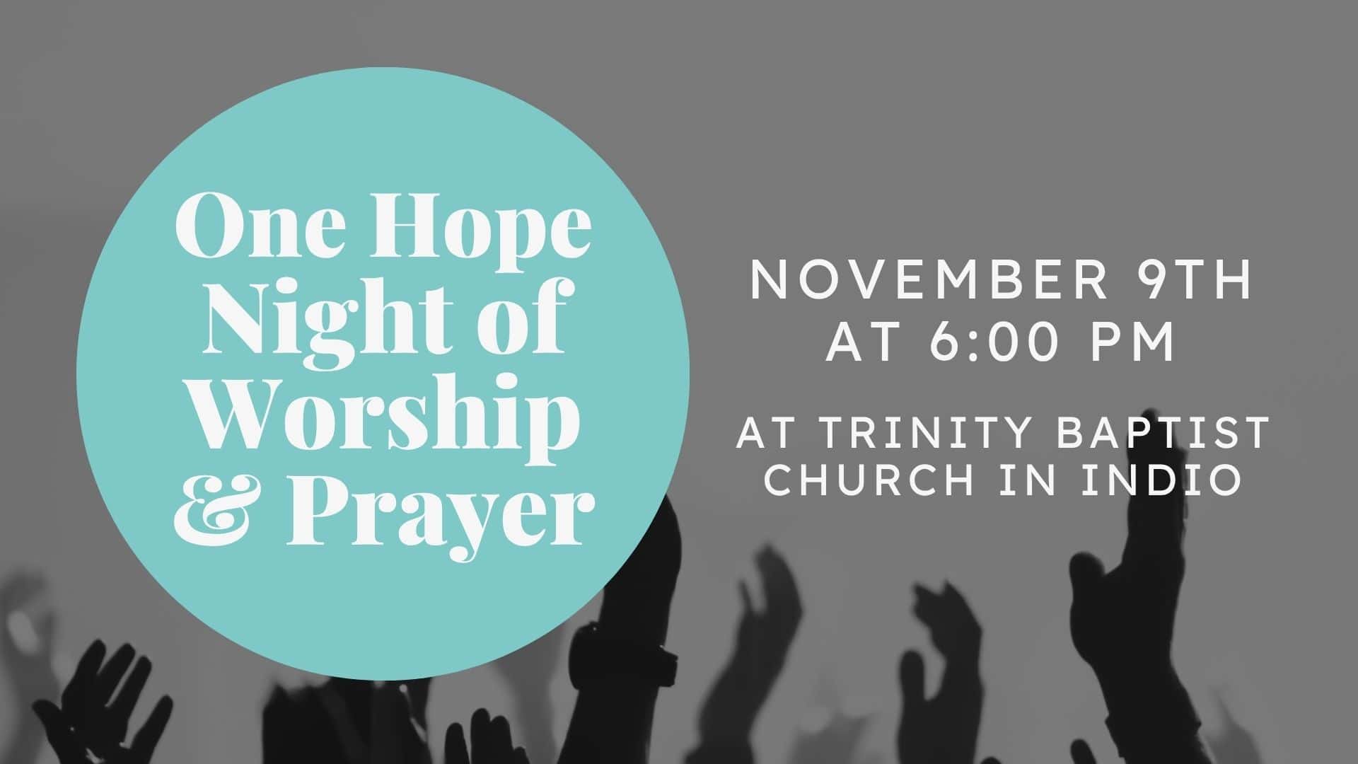 Thank you so much for helping us get the word out about the One Hope Night of Worship and Prayer! This page has many resources to help inform your friends, your group or your congregation about this important event.